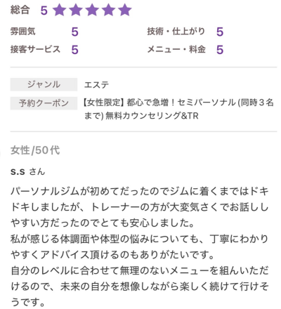 「初めてのパーソナルジムでも安心して通えました」