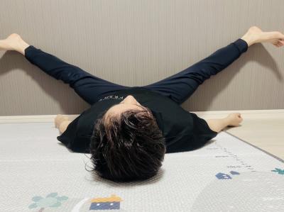 ②重力に任せながら、足を開脚。