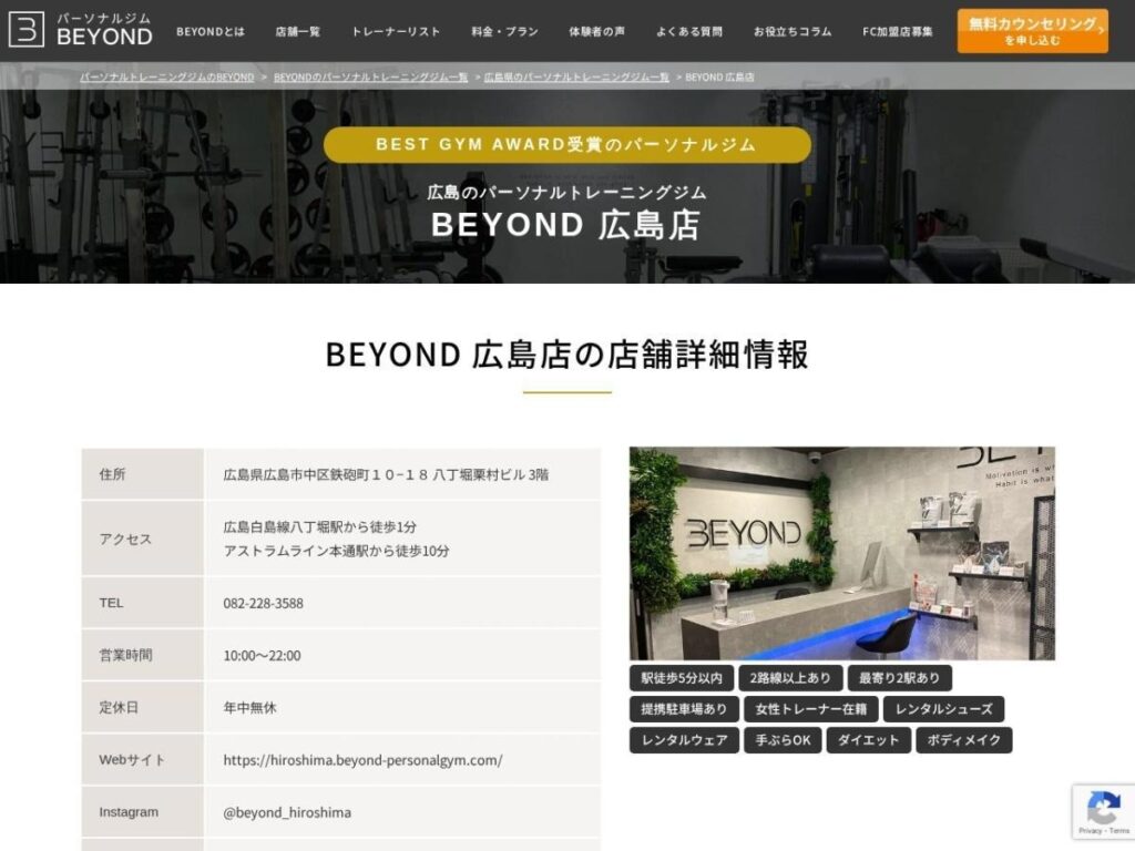 | 公式サイトURL | https://beyond-gym.com/gym/gym-hirosima/ |