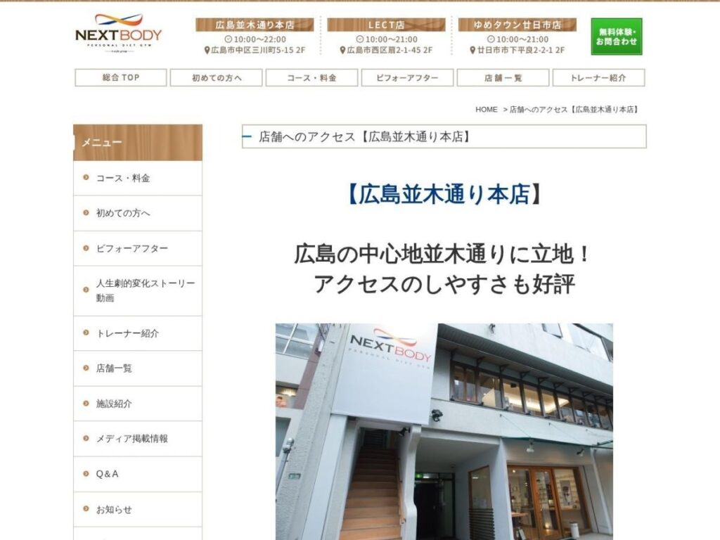 | 店舗名 | NEXT BODY(広島並木通り本店) |