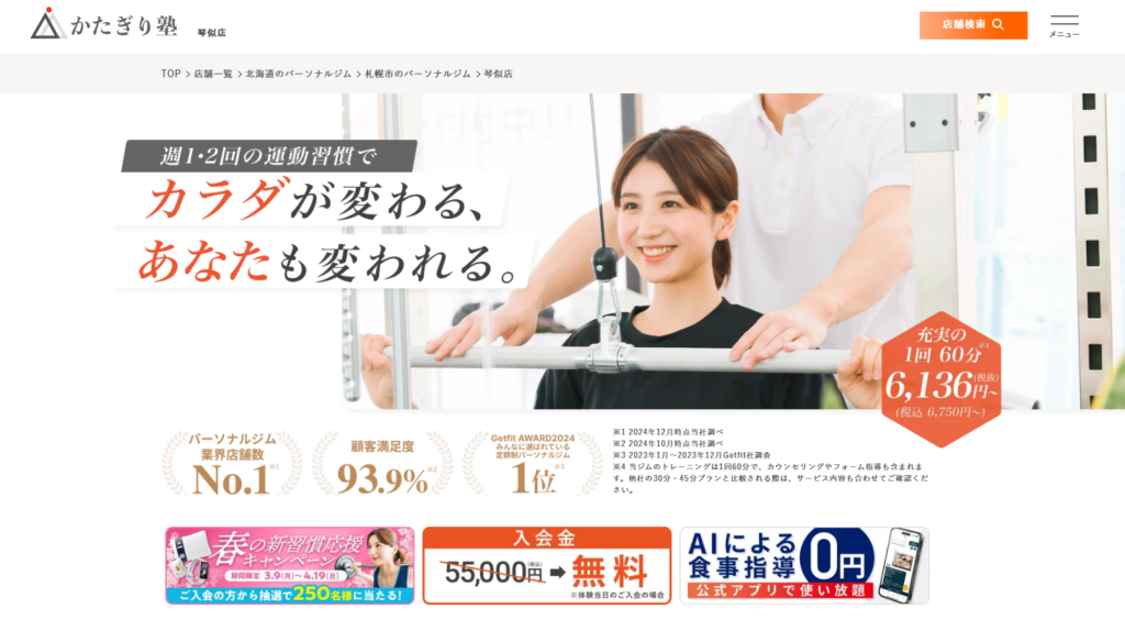 ・月4回の料金が抑えめで、「琴似パーソナルジムを安く通いたい」方に検討しやすい価格帯です。