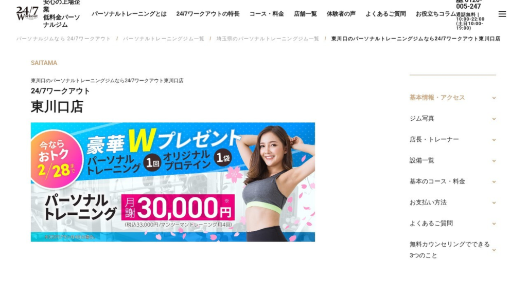 | 公式サイトURL | https://247-sports.jp/workout/gym/saitama/higashikawaguchi/ |