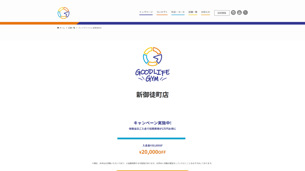 | 公式サイト | https://goodlifegym.jp/store/shinokachimachi/ |