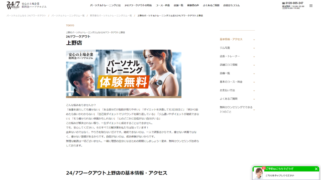 | 公式サイト | https://247-sports.jp/workout/gym/tokyo/ueno/ |