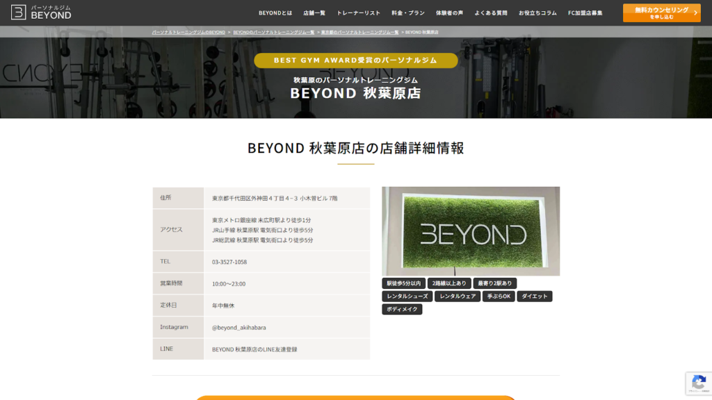 | 公式サイト | https://beyond-gym.com/gym/gym-akihabara/ |