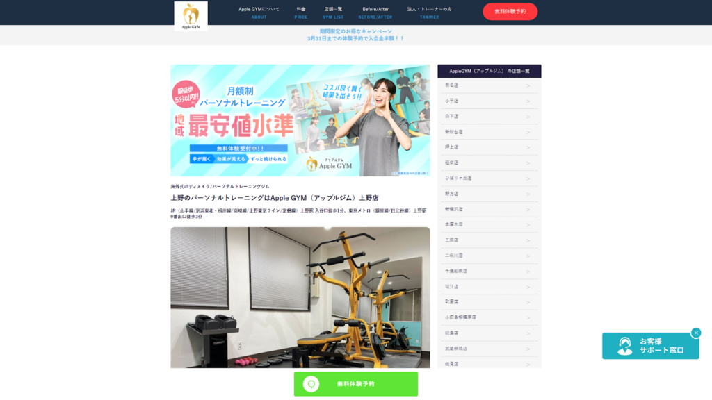 | 公式サイト | https://applegym.jp/shop/ueno/ |