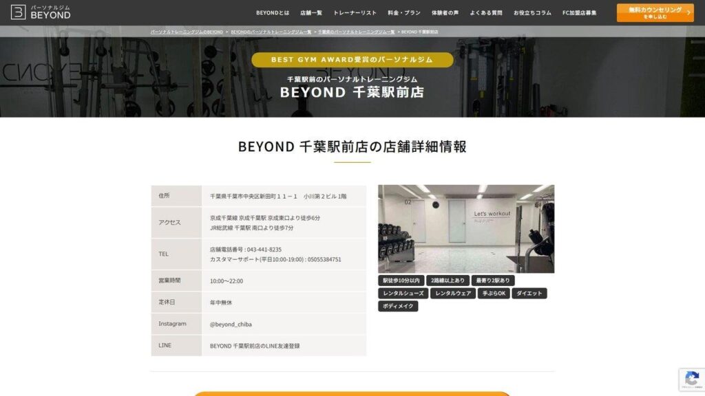 | 公式サイト | https://beyond-gym.com/gym/gym-chiba/ |