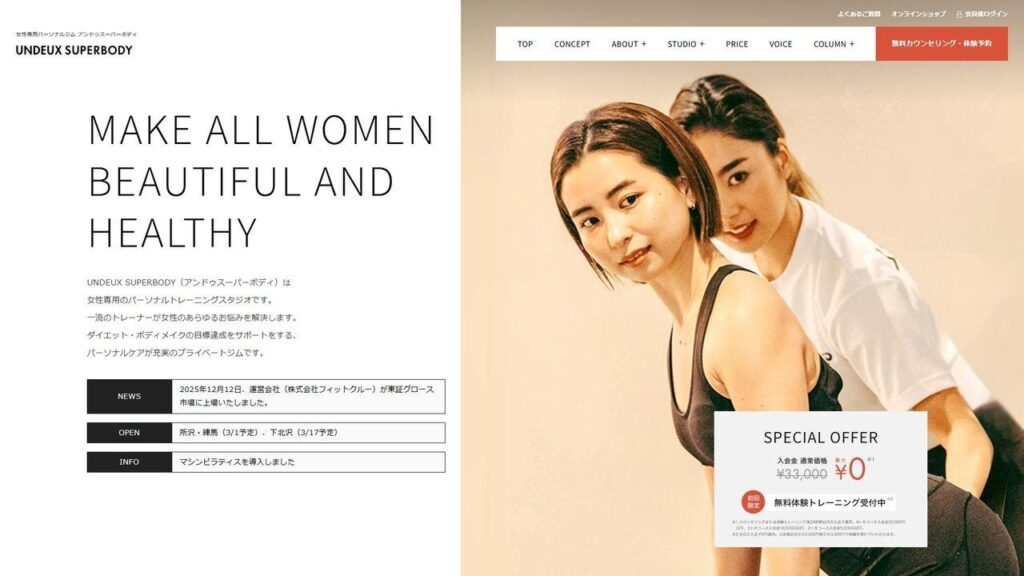 | 店舗名 | UNDEUX SUPERBODY LIFE(アンドゥスーパーボディ ライフ)千葉スタジオ |