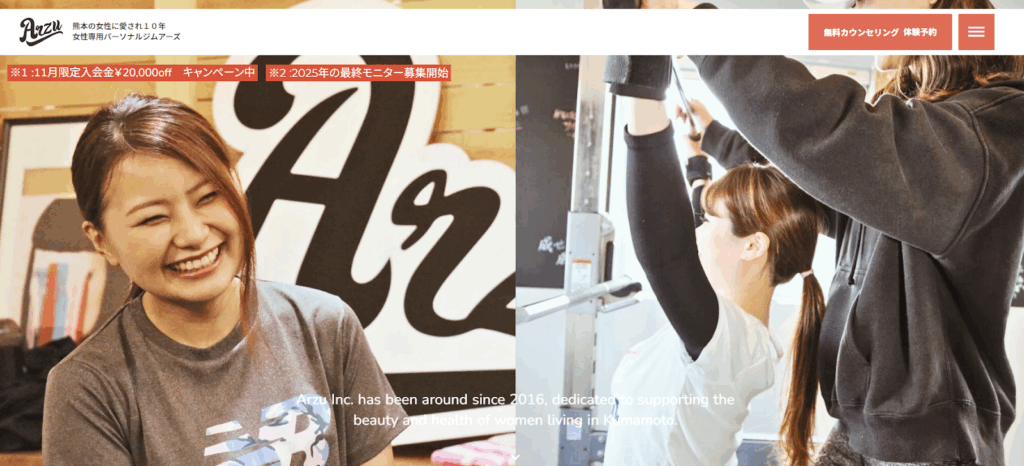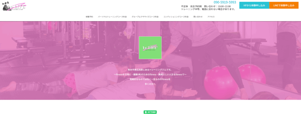 特徴: 熊本市東区小峯にある 女性専用 パーソナルジムです。トレーナーは全員女性で、理学療法士監修のもと安全かつ効果的なトレーニングを提供しています。熊本の女性向けパーソナルジムの 元祖的存在 であり、全国的にも真似できないレベルの高度なダイエット指導歴を持つ老舗です。 10年以上の指導実績 を誇り、一人ひとりのボディメイクに対する最適解を導き出すノウハウがあります。