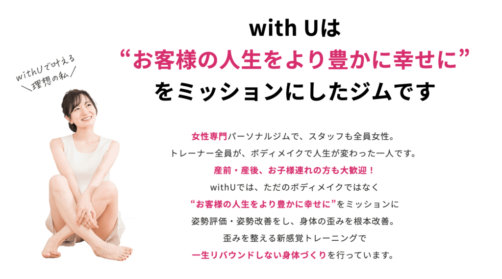 | 6 | with U | 月4回 24,000円〜 | ◎ | 高宮周辺 | 女性向けパーソナル寄り添い型サポート | メンタル面も重視/ゆっくり続けたい |