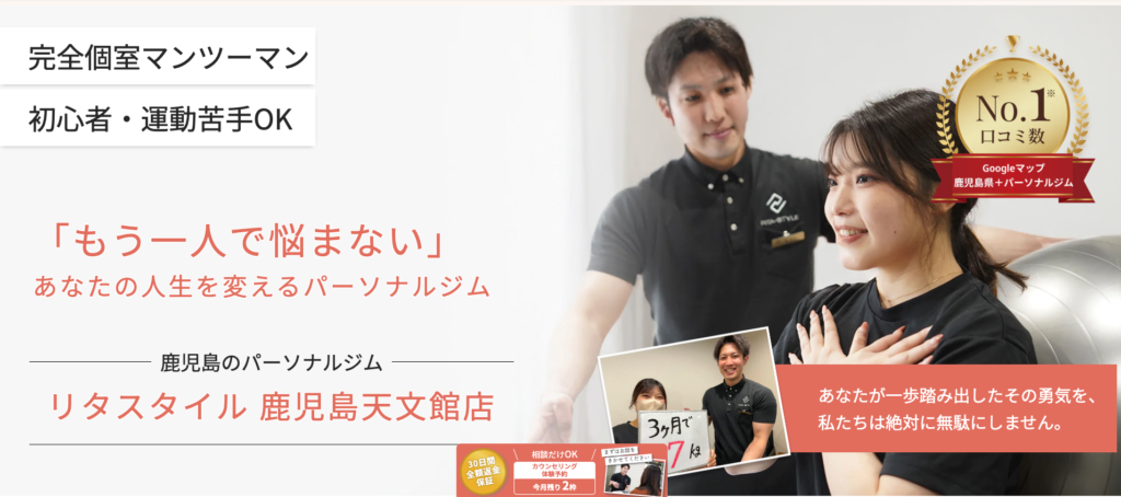 RITA-STYLEは、九州を中心に全国展開するパーソナルジムで、鹿児島県内には複数店舗を展開しています。中でも「鹿児島天文館店」は、天文館通電停から徒歩2分という好立地で、通いやすさも抜群です。
